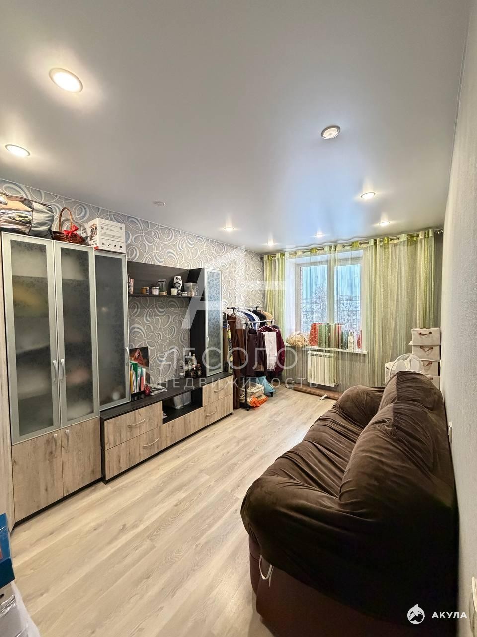 Окна выходят на школьный стадион — тихо, светло, без соседних домов прямо под окнами.