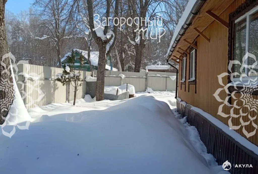Дом с мансардой. Облицован вагонкой, внутри отделан вагонкой и фальшбрусом. Кровля — металлочерепица, установлены пластиковые стеклопакеты. Кирпичный подвал. Терраса с видом на сад, живописные окрестности и реку. По границе участка растут сосны.
