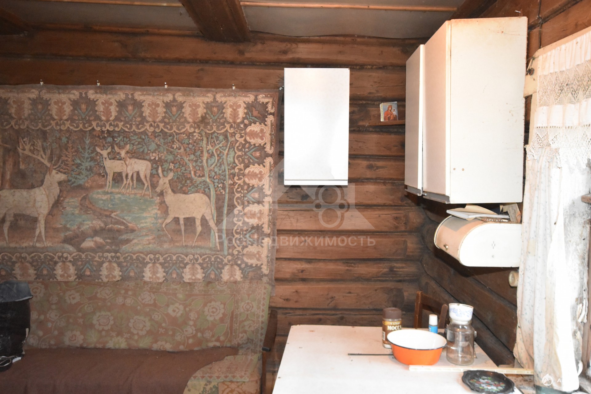 Продается 1-этажный дом бревно по адресу: Владимирская область, Кольчугинский муниципальный округ, деревня Новофроловское, Первая улица, 3.