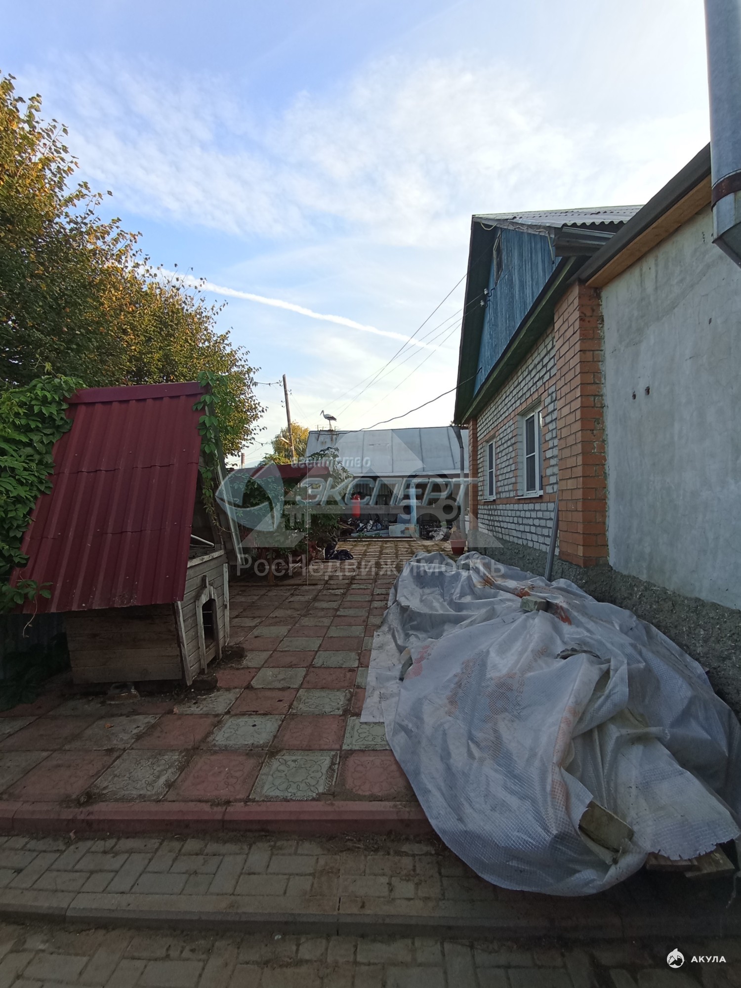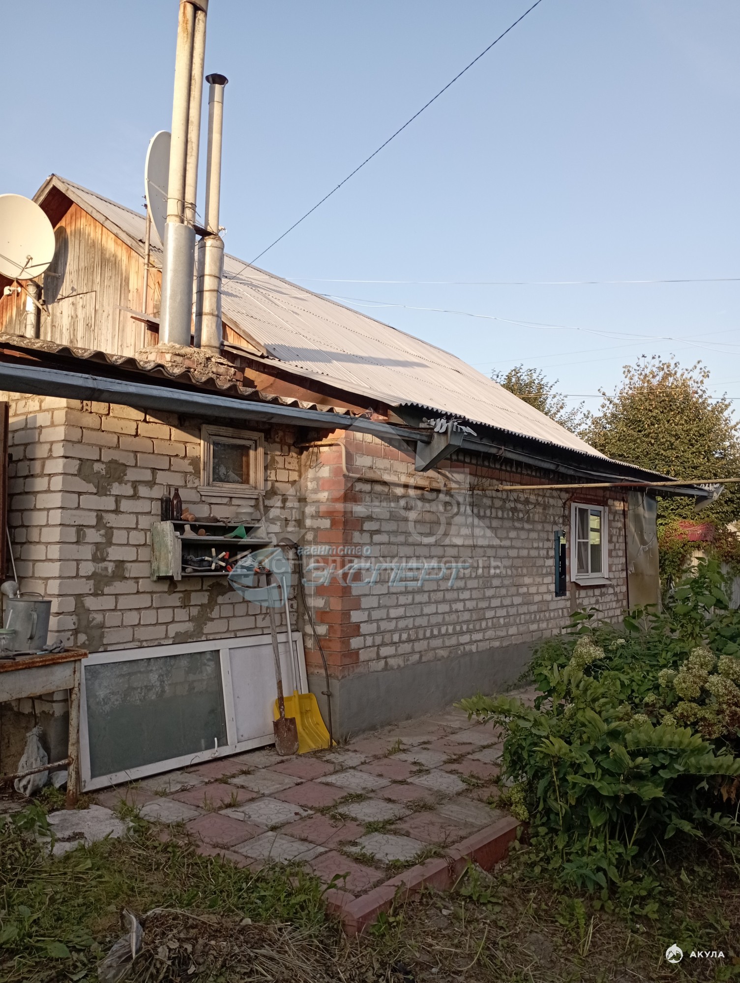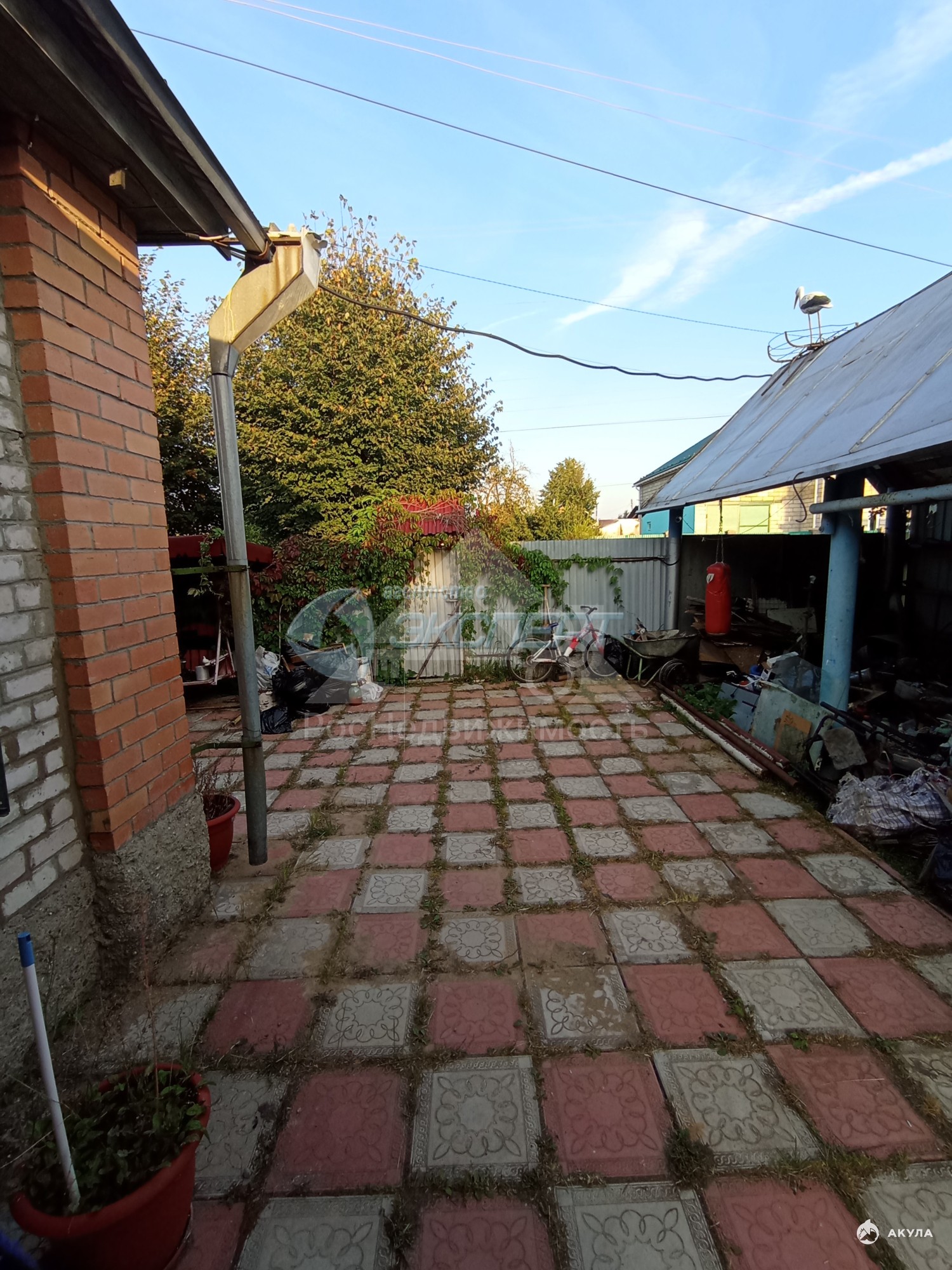 На участке есть гараж - керамзитобетонный, баня с террасой, навес без обшивки с ямой, беседка, теплица. Забор по фасаду - металлопрофиль.