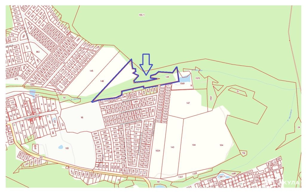 33: 05: 174109: 149, площадью 4, 26Га, стоимость - 5790000 рублей, подъезд к участку через ул.Ковергинская либо через ул. Дубровка по грунтовой дороге к северной сторне участка в Уварово. Участок граничит с лесом. По участку протекает небольшой ручей. Шикарные сосны. Отличные перспективы и возможности использования этого участка.