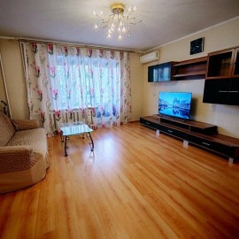 Сдается 3-комнатная квартира в кирпичном доме. Имеется необходимое для проживания. Новый ТВ, новый матрас (160х200), кондиционеры в зале с кухней и в спальне, WiFi. Есть детская кроватка, спортивный уголок. Через дорогу - супермаркет Верный, фитнесклуб Академия тела, аптека,...