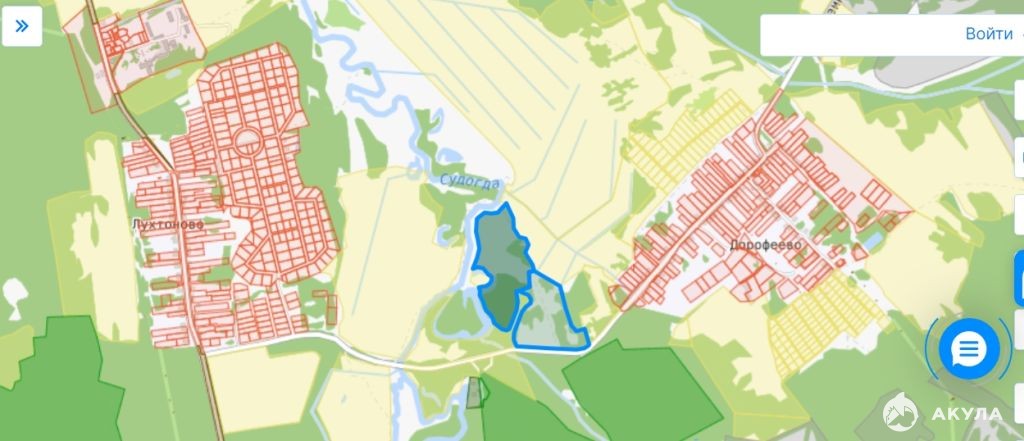 Участки находятся в 13 км от трассы М7 по адресу: Владимирская область, р-н Судогодский, МО Лавровское (сельское поселение), примерно в 500 м по направлению на запад от д. Дорофеево, в пойме реки Судогда между деревнями Дорофеево и Лухтоново и имеют протяженную границу участка по реке, так же на участке расположен лес и озеро старица.