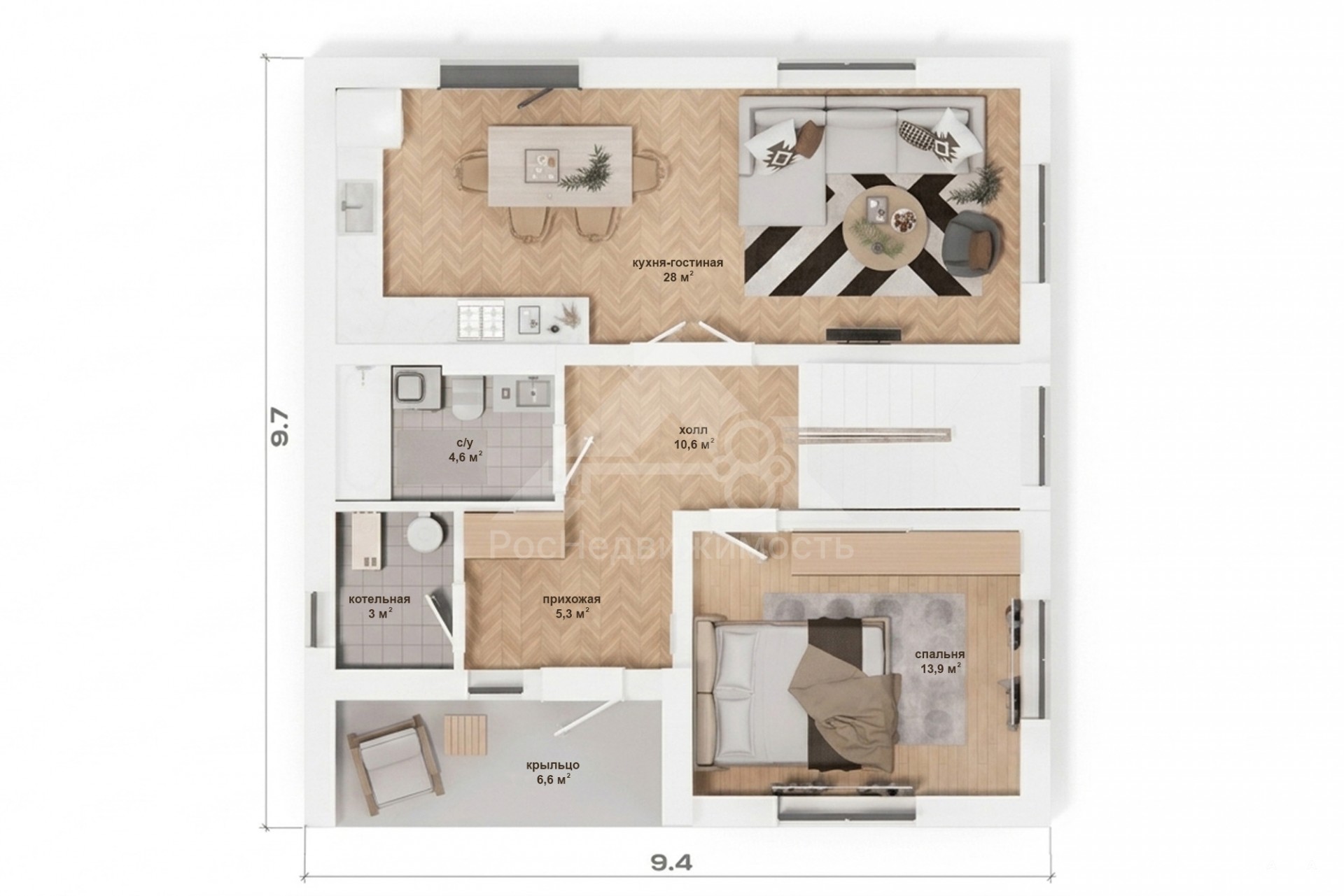 Предлагаем к продаже земельный участок с готовым проектом одноэтажного дома 143 м²